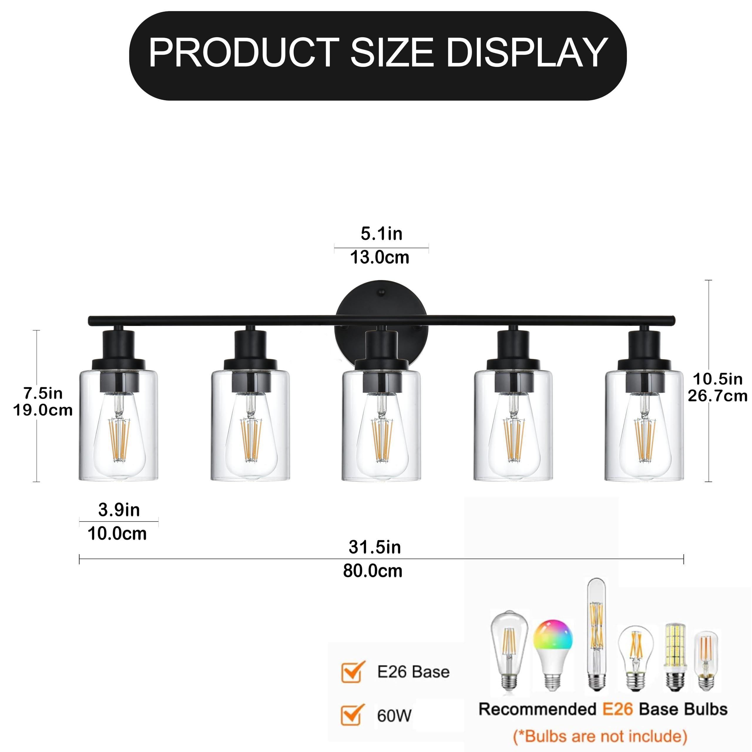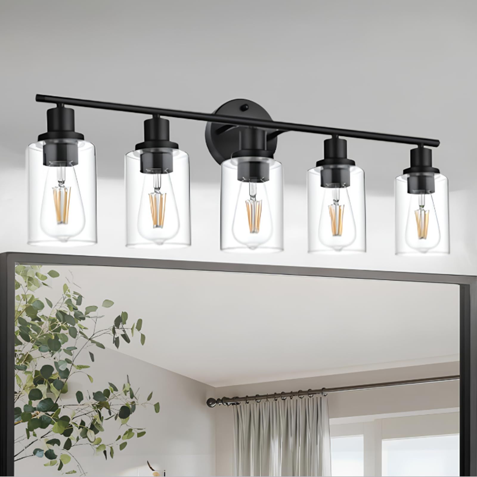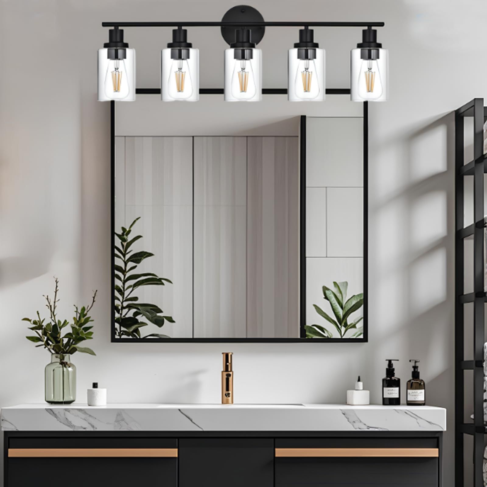 5-Light Bathroom Light Fixtures, Brushed Nickel Modern Vanity Lights Over Mirror with Clear Glass Shade 5-Light Bathroom Light Fixtures, Brushed Nickel Modern Vanity Lights Over Mirror with Clear Glass Shade 5-Light Bathroom Light Fixtures, Brushed Nickel Modern Vanity Lights Over Mirror with Clear Glass Shade