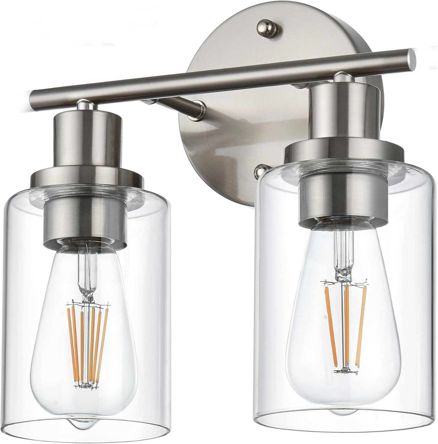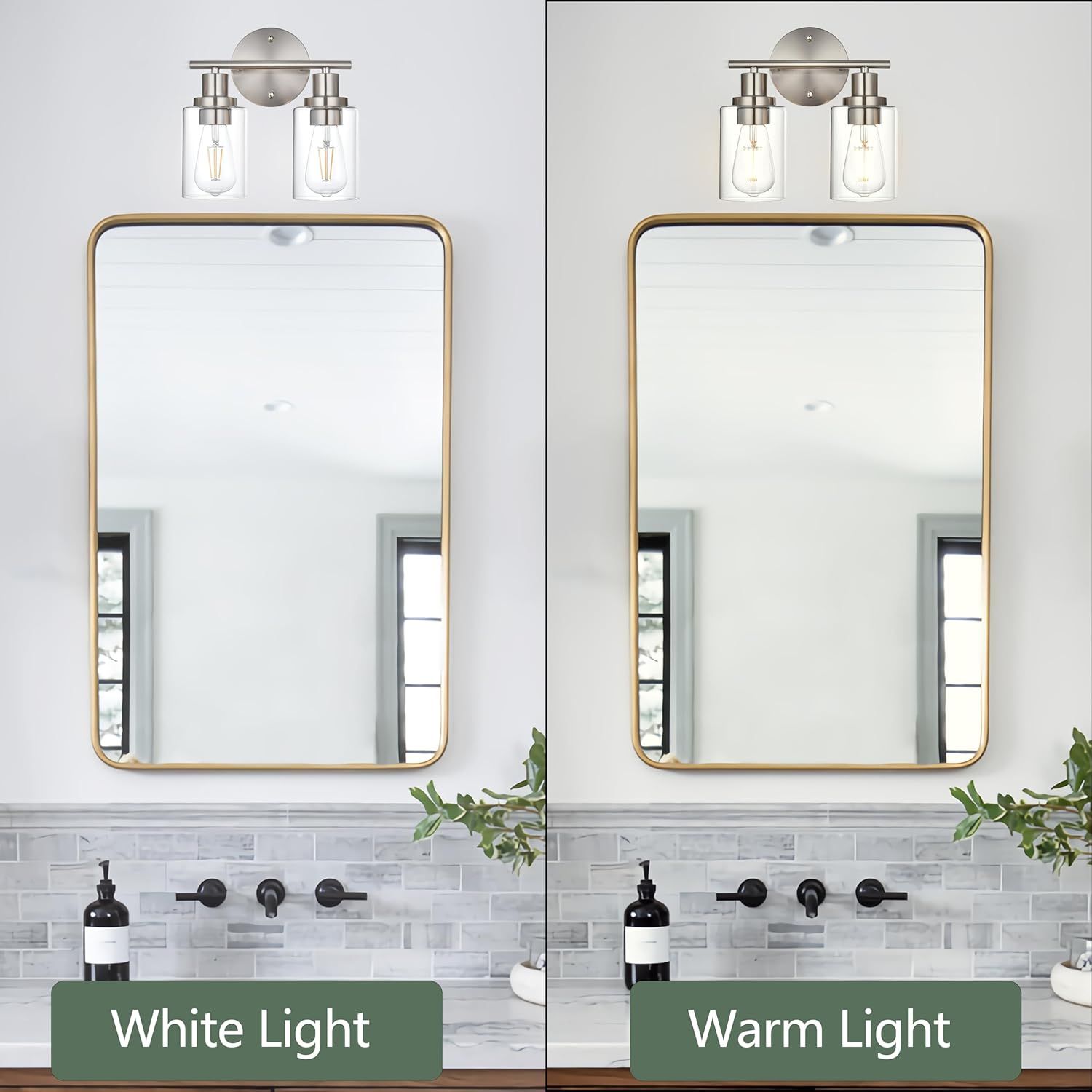 The Brushed Nickel bathroom light fixtures feature a sleek brushed nickel finish lamp body accompanied by clear glass shades. The upgraded finish not only adds an elegant touch but also includes a scratch and tarnish-resistant coating, ensuring that the brushed gold bathroom light maintains its pristine appearance over time. This exquisite bathroom vanity light is suitable for various decoration styles, making it the perfect choice to enhance your home lighting.
