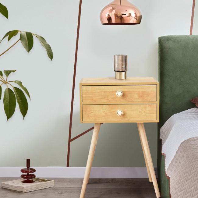 Mid Century Modern 2 Drawers Nightstand in Natural