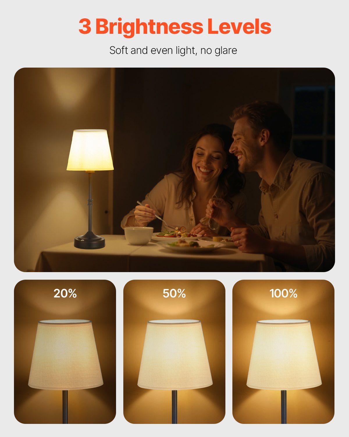 · 3 Adjustable Brightness Levels: Easily adjust brightness (20%, 50%, 100%) to suit reading, ambiance, or energy-saving needs. Switch between brightness settings with a simple touch of the power button for convenience