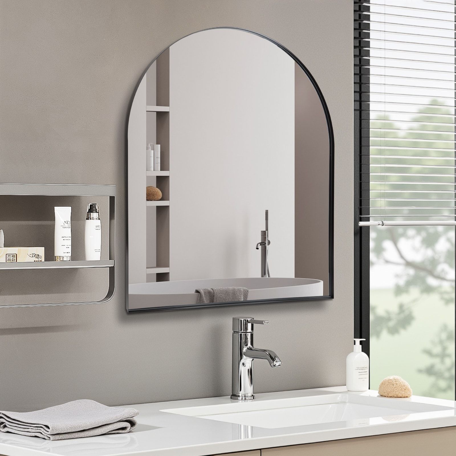 [Sturdy Metal Frame] Made of aluminum material.  The arched mirror is surrounded by "seamless design" frame, which protects the mirror from rusting, and endow the mirror anti-water, shockproof, non-rusting more stable and extends longer life.