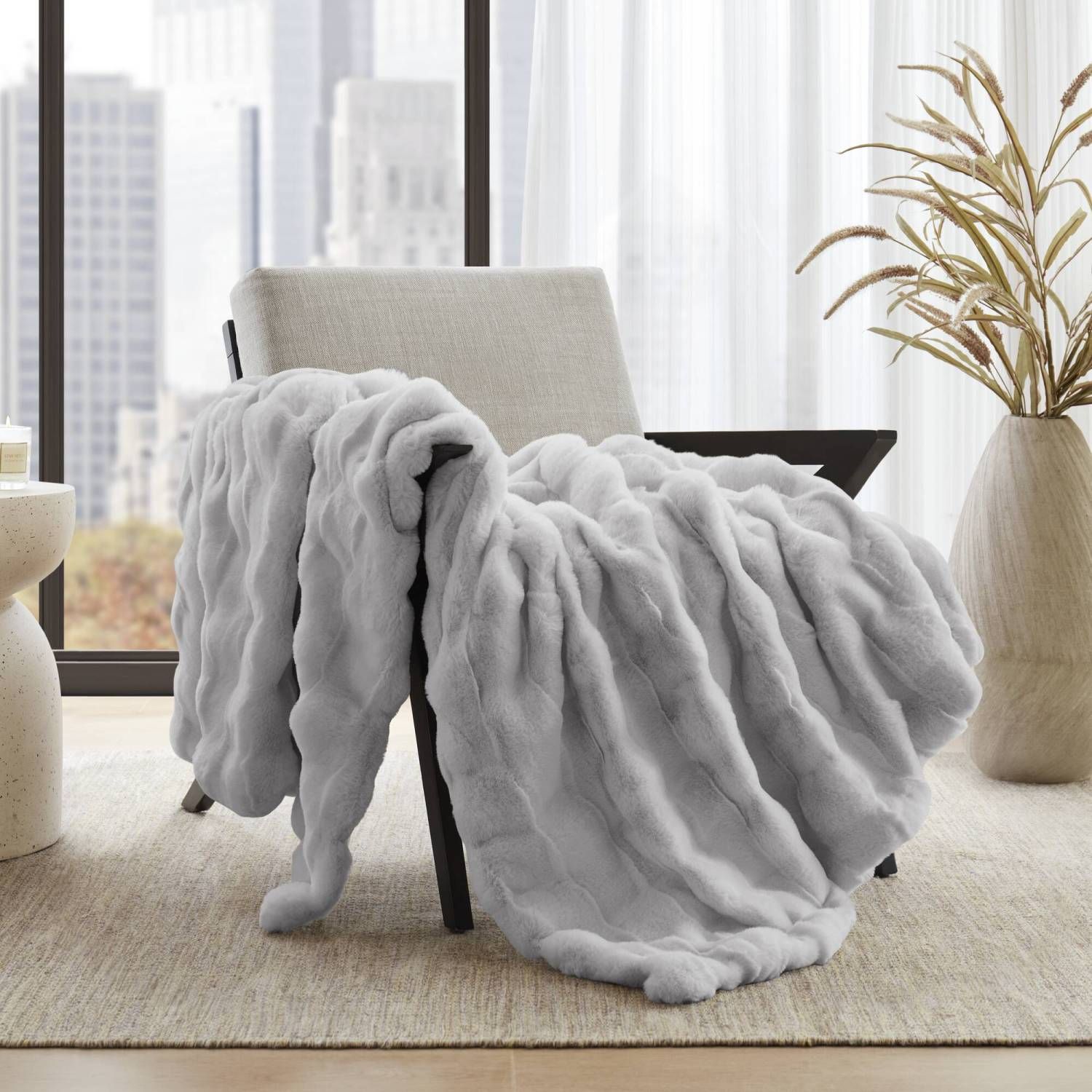 1 PC 50x60" Vivienne Faux Fur Throw Light Grey 1 PC 50x60" Vivienne Faux Fur Throw Light Grey 1 PC 50x60" Vivienne Faux Fur Throw Light Grey