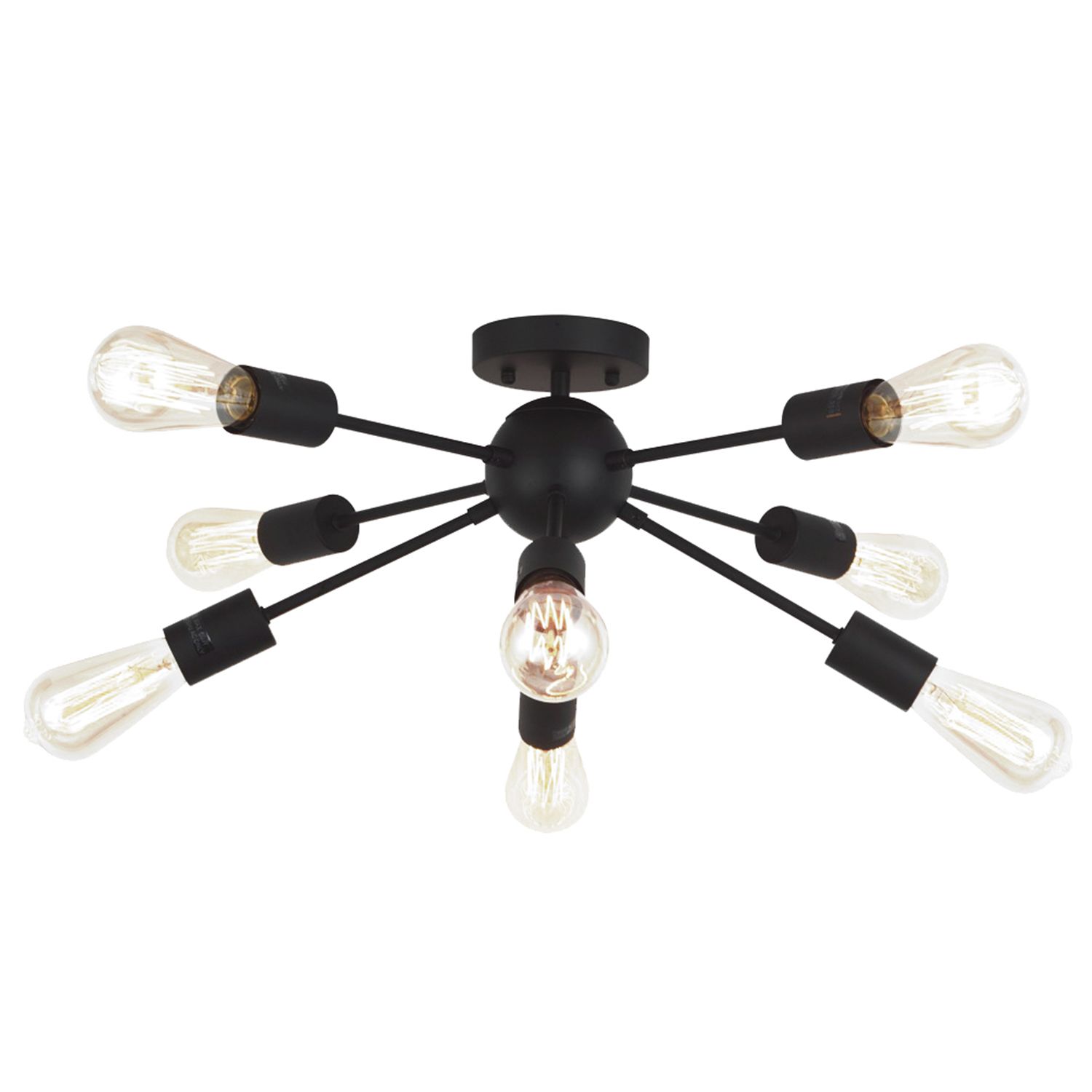 Unique Design: This black modern ceiling light combines simplicity and elegance, showcasing a multi-directional geometric design with 8 linear arms that intersect to accommodate 8 bulbs, resulting in a symmetrical light distribution. Every detail has been meticulously crafted to perfection. The exceptional lighting effect it creates will add charm to your surroundings and elevate your overall sense of well-being.A stunning semi-flush ceiling light seamlessly combining satellite style with contemporary geometric shapes. This exquisite fixture strikes a perfect balance between modern and retro aesthetics, adding a cozy and sophisticated touch to your home decor. It is suitable for any place in your house, such as the entryway, bedroom, dining room, living room, corridors, hallways, basements, balconies, attics, bars, offices, farmhouses, children's rooms, etc.