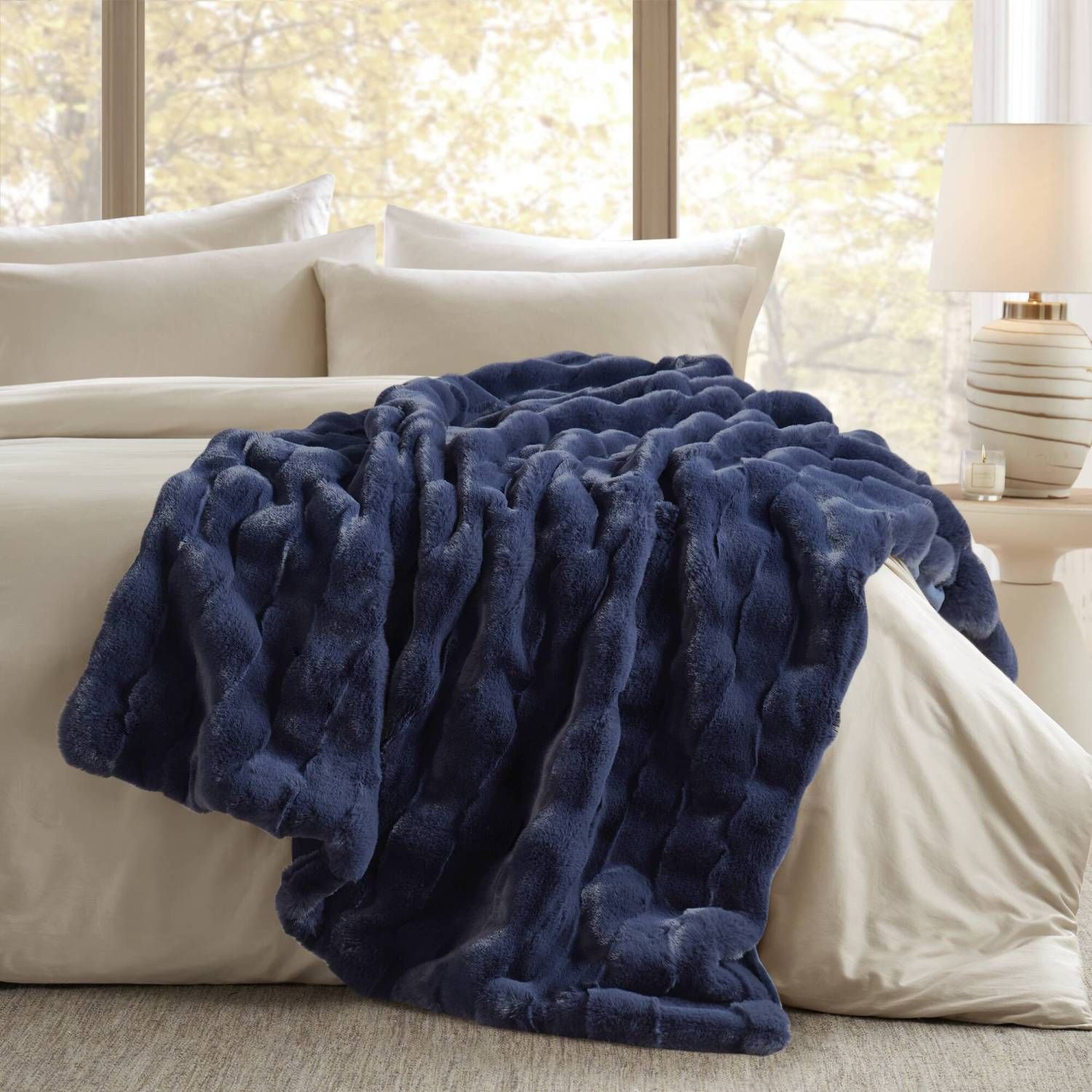1 PC 50x60" Vivienne Faux Fur Throw Navy 1 PC 50x60" Vivienne Faux Fur Throw Navy 1 PC 50x60" Vivienne Faux Fur Throw Navy