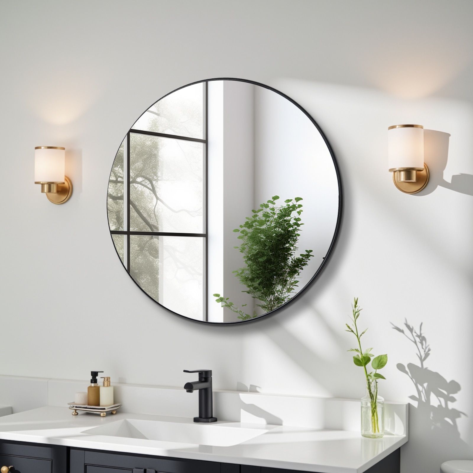 Home > Black Deep Frame 36" Round Mirror, Modern Dresser Mirror Wall Mounted Decor Metal Frame for Bedroom Living Room Entryway Fireplace Mantel Dining Room