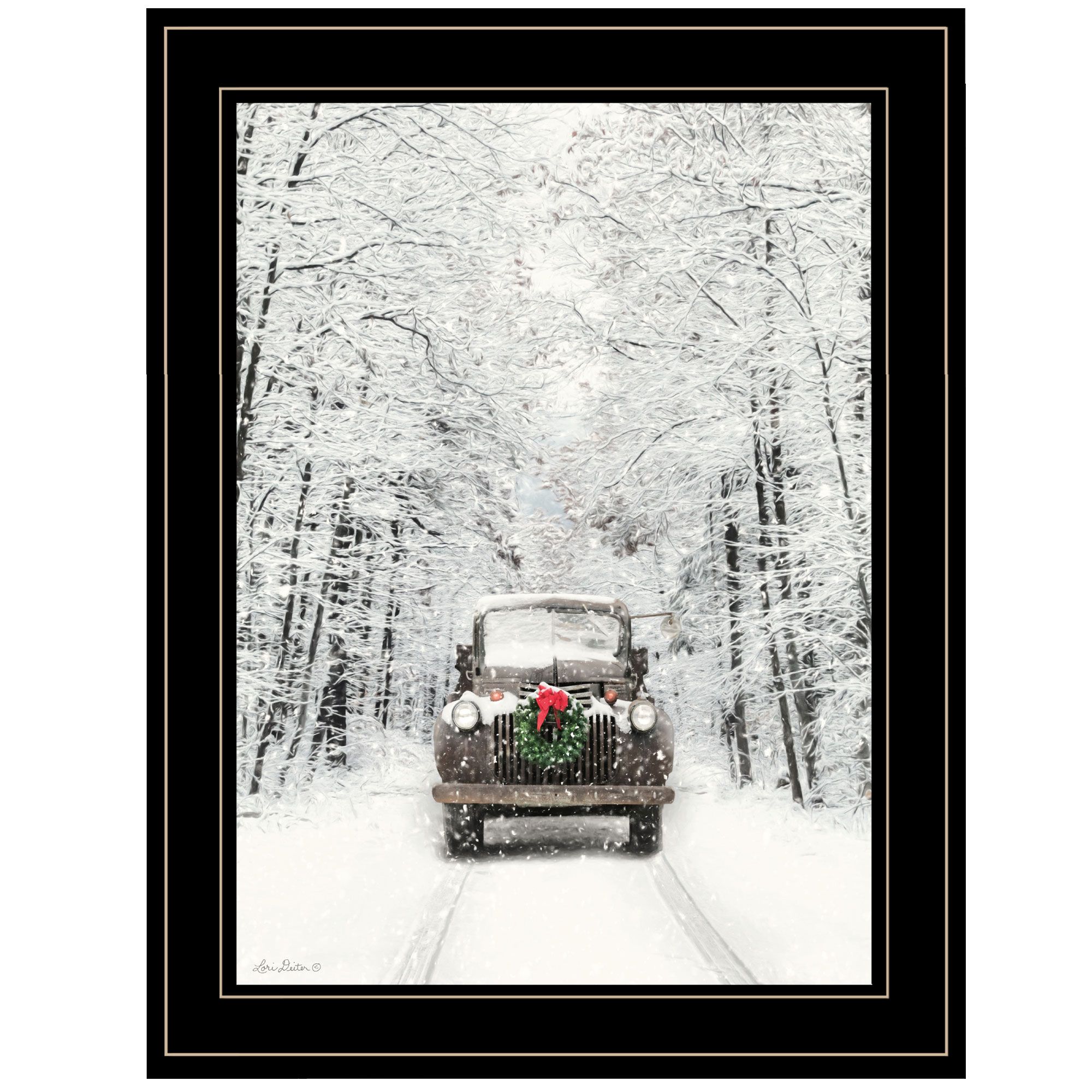 "Antique Christmas" by artisan Lori Deiter. This decorative black framed print (15x19) of a winter scene of a vintage pickup with a wreath on the front heading home for Christmas. Crafted by skilled American crafters and coated with a fade-resistant texture, this piece has a canvas-like appearance that will last for years to come. Invest in a piece that is truly one-of-a-kind.•Transform your walls with this stunning piece of art and bring a touch of modern elegance to your room. This stunning piece will not only add visual interest to any room but it's minimalist design will bring a sense of serenity to your space.•Tired of dull, empty walls in your home? We believe that walls should inspire, not bore. That's why we offer a wide range of wall art to suit any space from bedroom and kitchens to office and beyond. Give your walls a facelift with our printed arts and transform your space into a stylish and inviting home.•This framed wall art is hand-crafted in the USA of high-quality wood with the surface of the art coated with a fade-resistant texture which gives it a canvas-like appearance for many years of enjoyment in your home.•Bring a pop of colour and style to any room with our fully assembled and ready-to-hang wall art. With a wide selection of decorative pieces to choose from, you'll easily find the perfect match for your personal taste or to give as a thoughtful gift. Don't miss out on the opportunity to add some unique charm to your space.•Experience the unmatched quality and durability of American-made craftsmanship with this individually hand-crafted wall decoration art. Skilled crafters put their expertise into every piece to ensure it will stand test of time and bless your eyes for years to come.